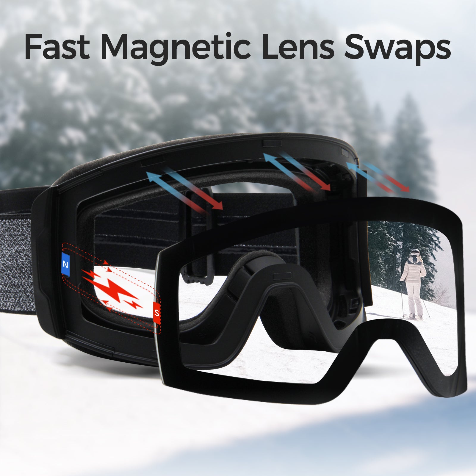 QuickSwap Magnetic Ski Goggles – Matte Black Frame + Clear Lens