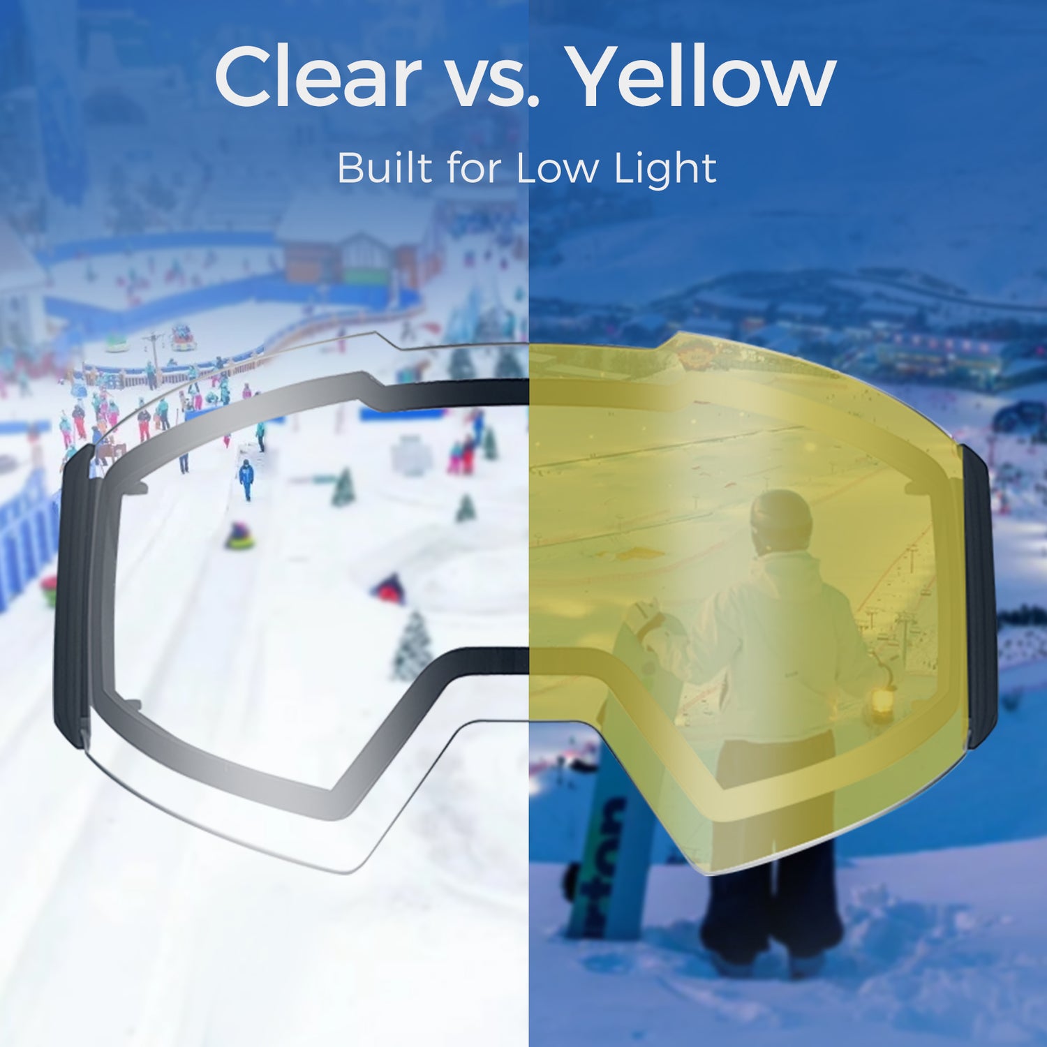 Skiing in low-light conditions—such as flat light, overcast days, storms, or night skiing—can make it harder to read terrain and maintain confidence on the slopes. Low-light ski goggles are designed to improve contrast and visibility when natural light is limited, helping skiers better distinguish bumps, shadows, and changes in snow texture.