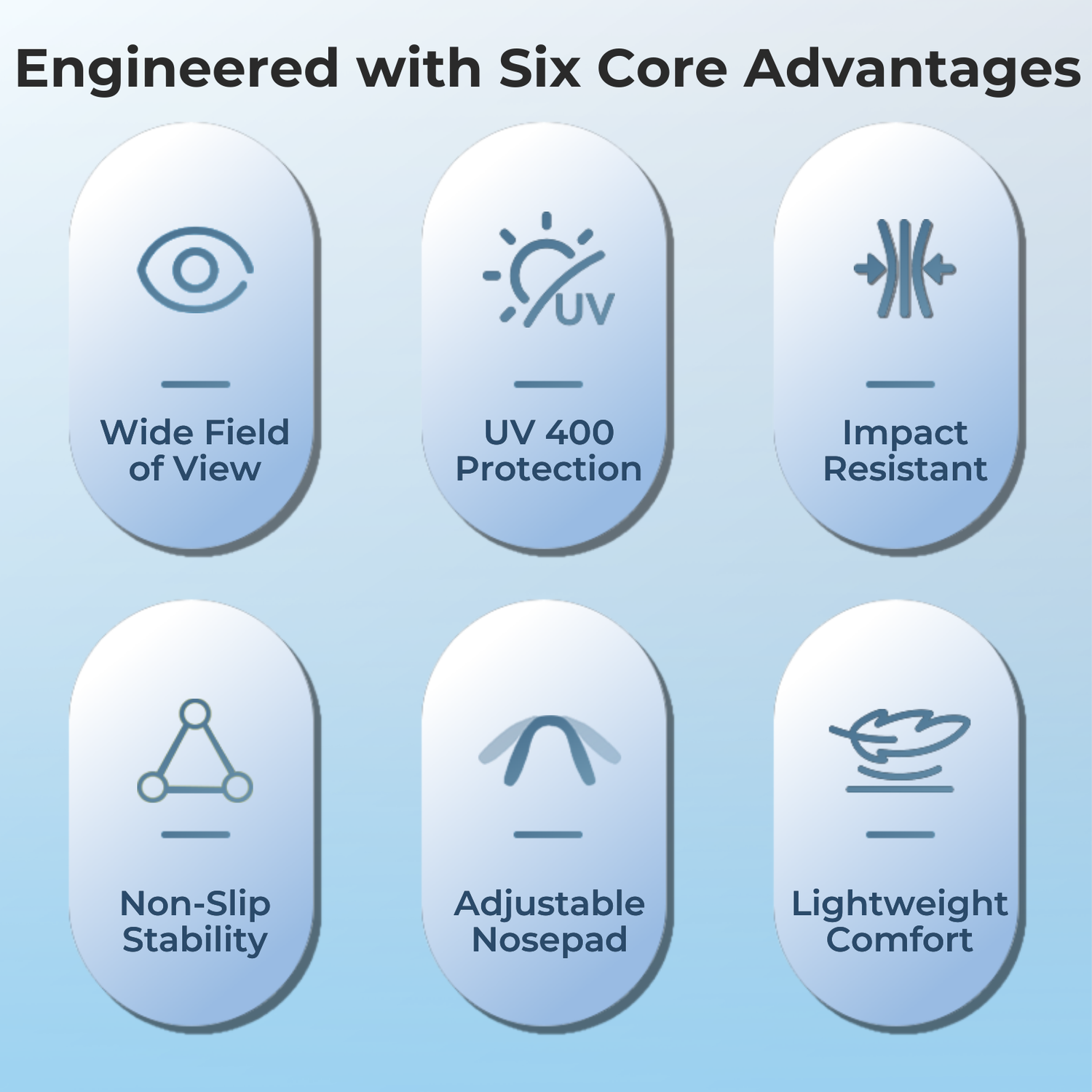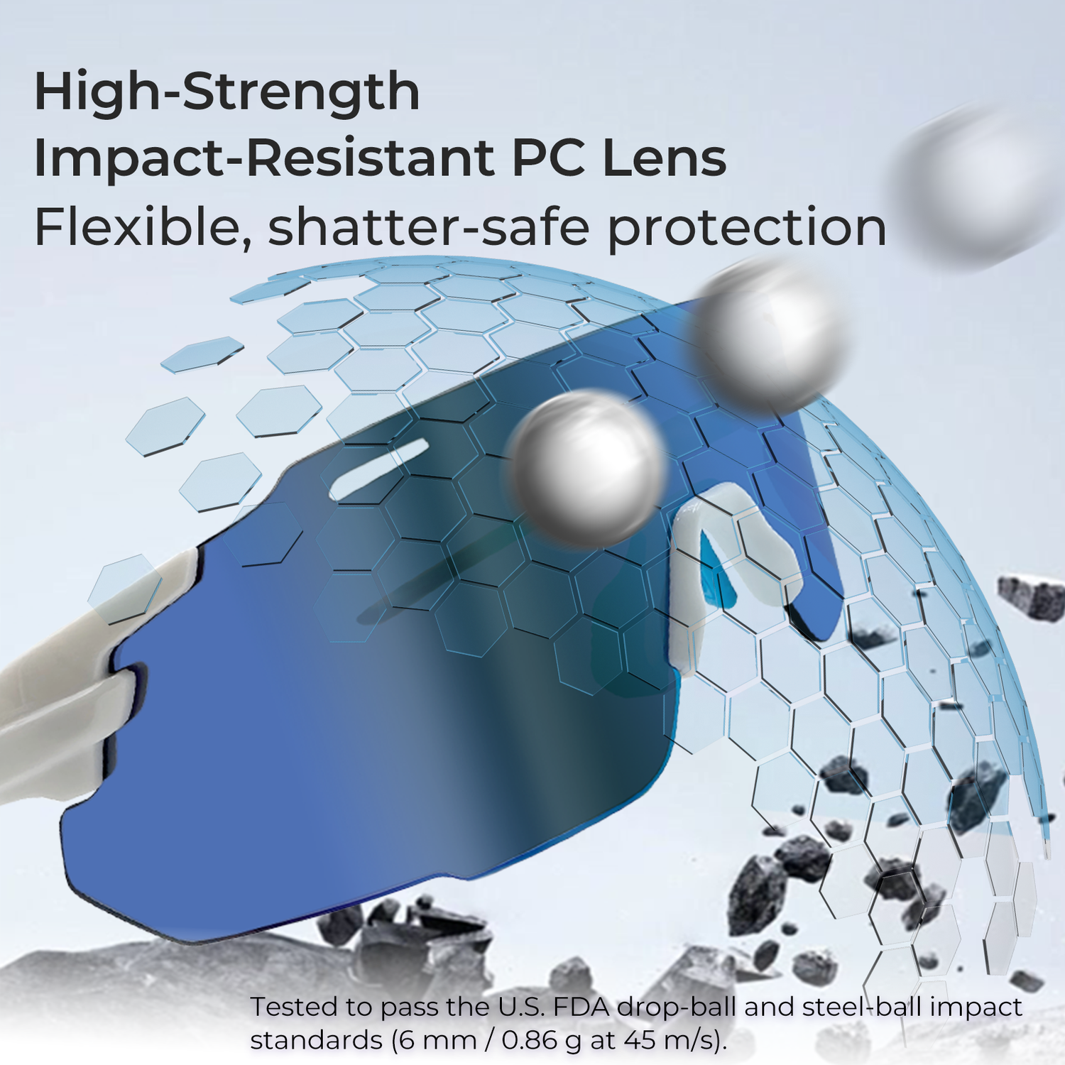 A wide view, UV protection, impact resistance, and secure stability—all in a lightweight design built for demanding outdoor sports.