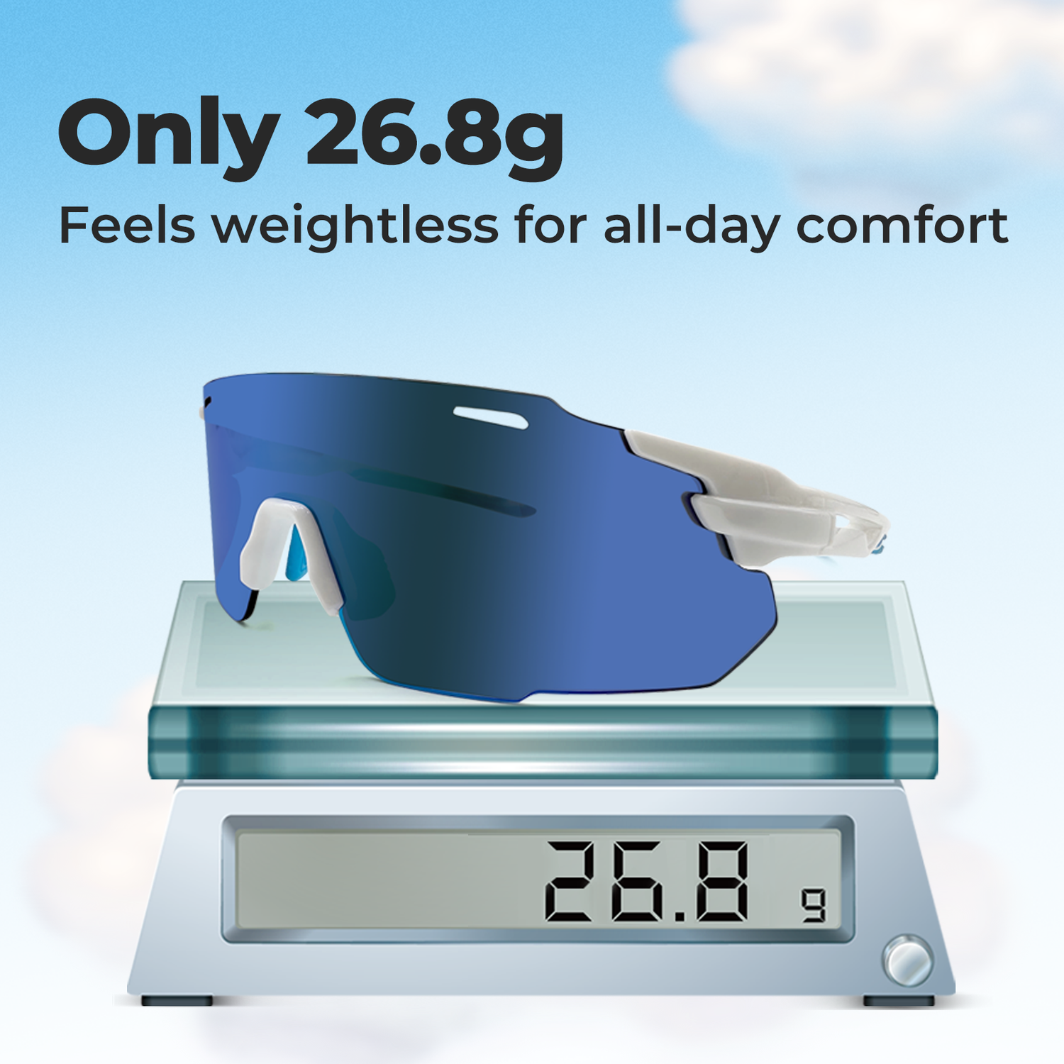 Weighing only 26.8g, these sunglasses feel almost weightless. The feather-light build reduces fatigue during long rides and extended workouts while offering reliable wind resistance at high speeds.